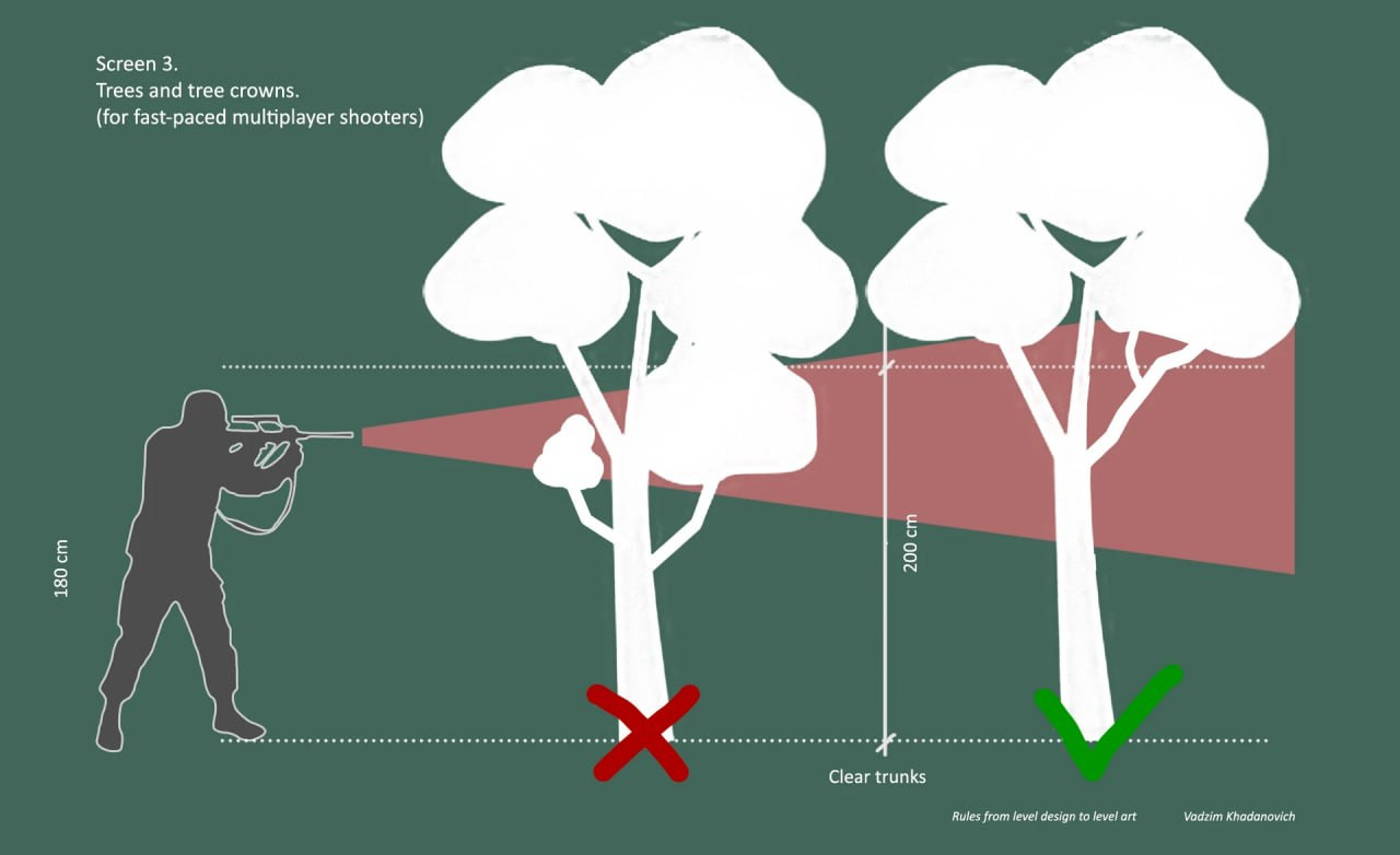 Полезнейшая памятка от Vadzim Khadanovich о расположении растительности в дизайне уровней шутеров 🌱